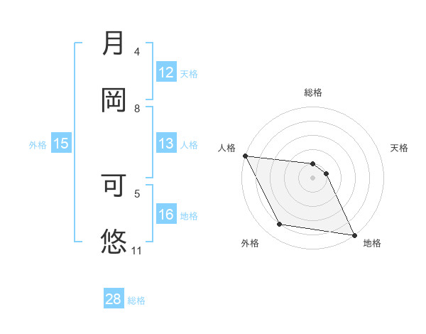 月岡 可悠さんの外格は15画の4点!