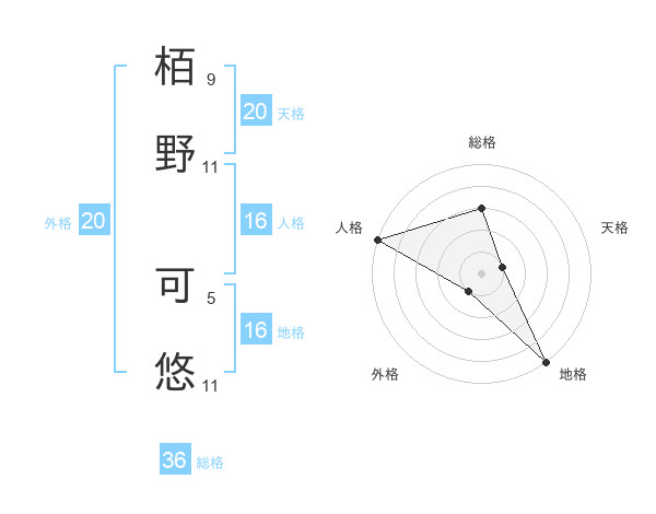 栢野 可悠さんを姓名の画数から五運を鑑定