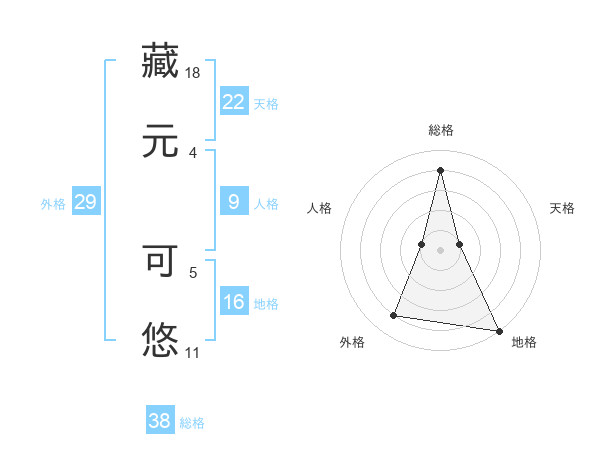 藏元 可悠さんを姓名の画数から五運を鑑定