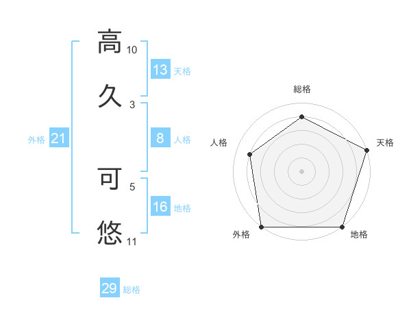 高久 可悠さんの天格は13画の5点!