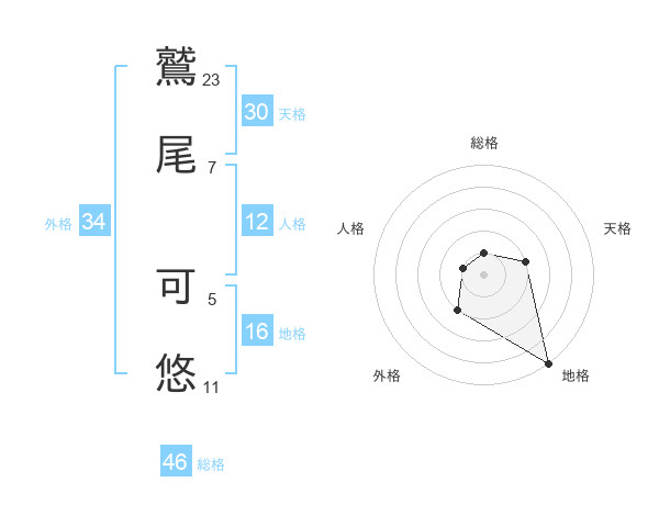 鷲尾 可悠さんの天格は30画の2点!