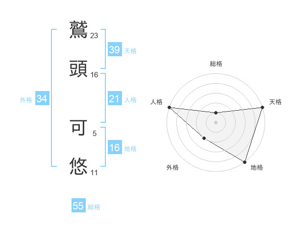 鷲頭 可悠さんを姓名の画数から五運を鑑定