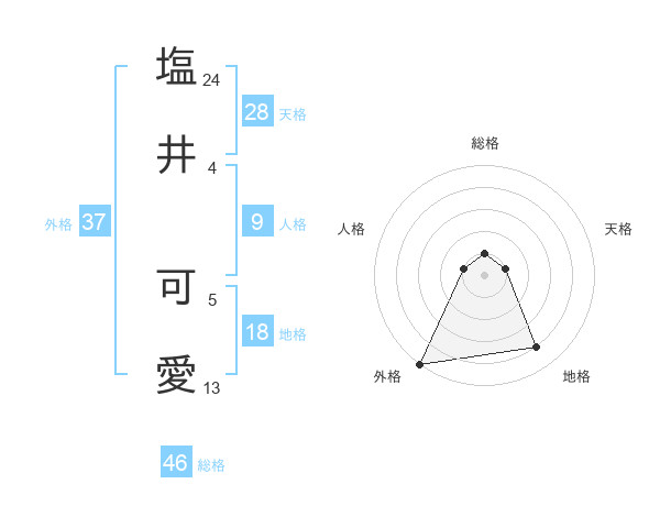 塩井 可愛さんの外格は37画の5点!