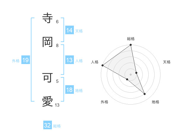 寺岡 可愛さんの天格は14画の1点!