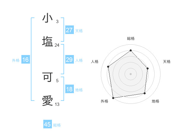 小塩 可愛さんの総格は45画の4点!
