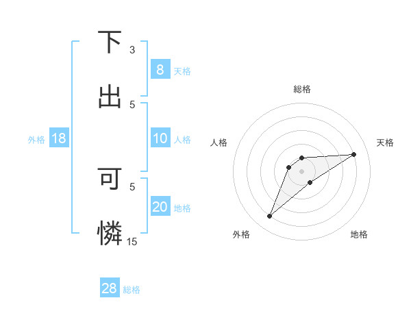 下出 可憐さんの地格は20画の1点!
