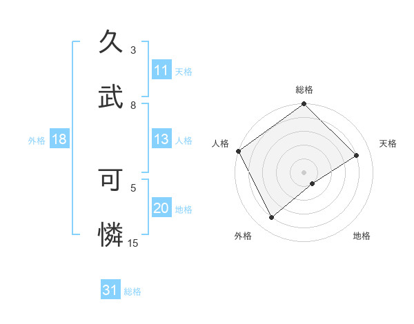 久武 可憐さんの総格は31画の5点!
