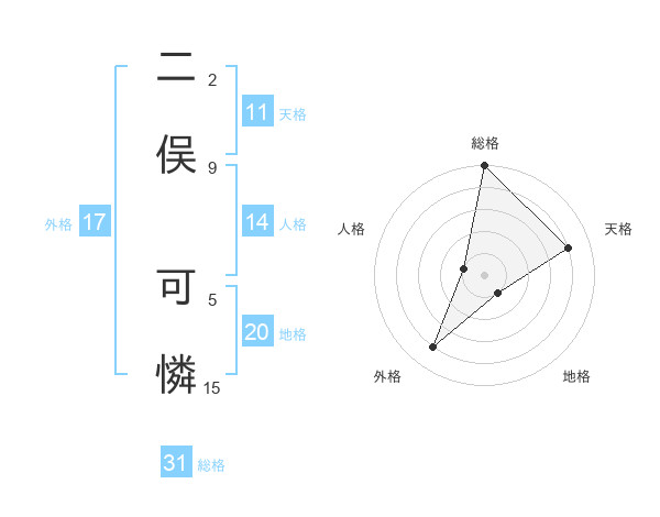 二俣 可憐さんの総格は31画の5点!