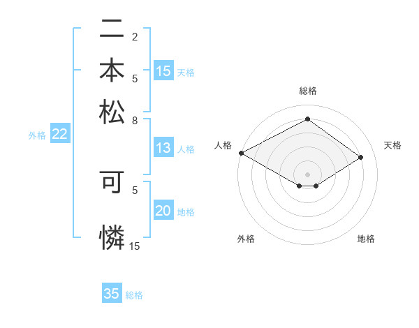 二本松 可憐さんを姓名の画数から五運を鑑定