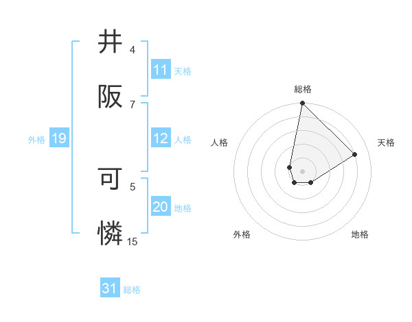 井阪 可憐さんの総格は31画の5点!