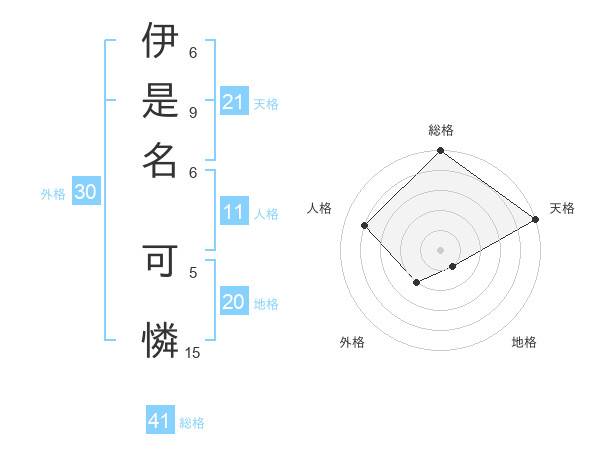 伊是名 可憐さんの総格は41画の5点!