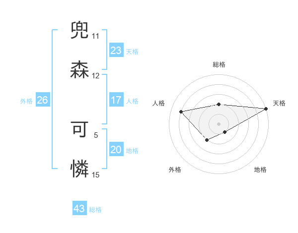 兜森 可憐さんの総格は43画の2点!