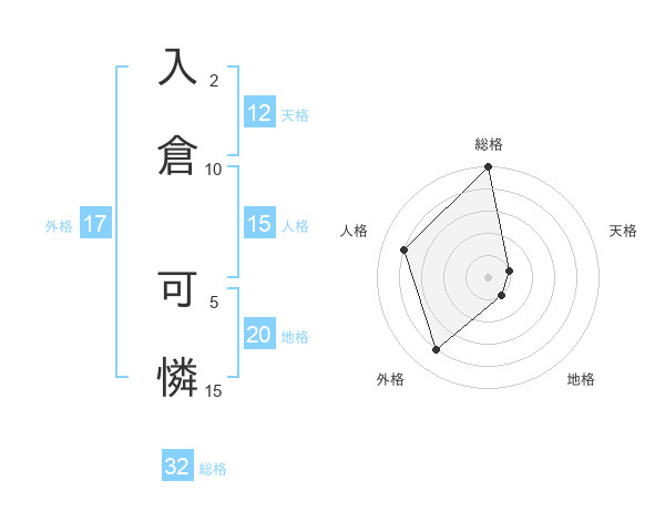 入倉 可憐さんの総格は32画の5点!