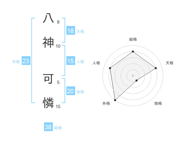 八神 可憐さんの総格は38画の4点!