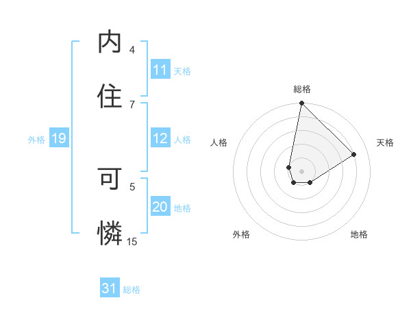 内住 可憐さんの総格は31画の5点!