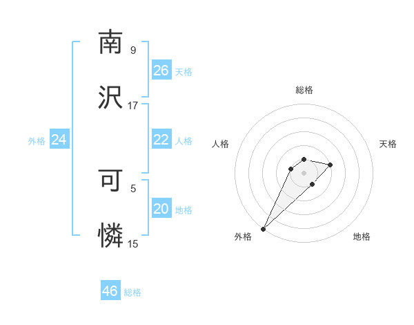 南沢 可憐さんを姓名の画数から五運を鑑定