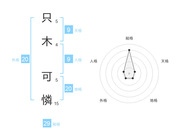 只木 可憐さんの総格は29画の4点!