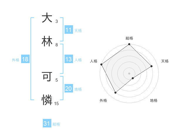 大林 可憐さんの総格は31画の5点!
