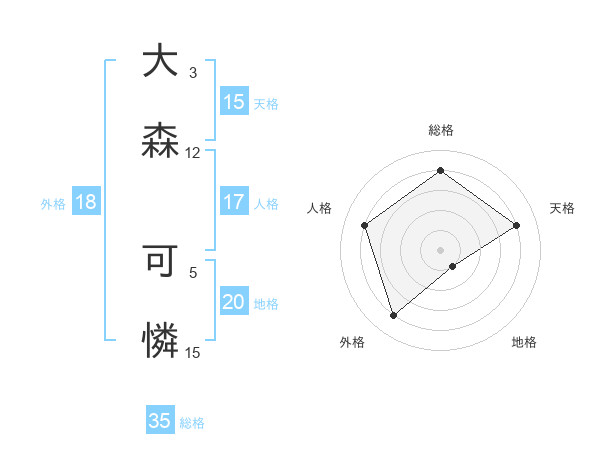 大森 可憐さんの総格は35画の4点!