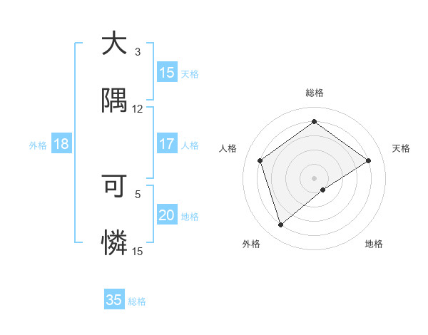 大隅 可憐さんを姓名の画数から五運を鑑定