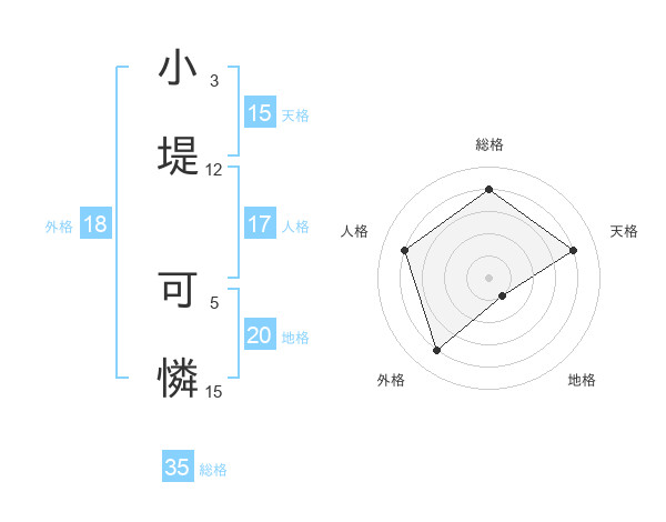 小堤 可憐さんを姓名の画数から五運を鑑定