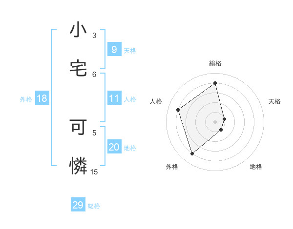 小宅 可憐さんを姓名の画数から五運を鑑定