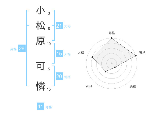 小松原 可憐さんの天格は21画の5点!