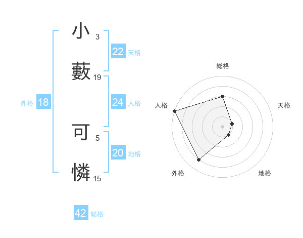 小藪 可憐さんの地格は20画の1点!