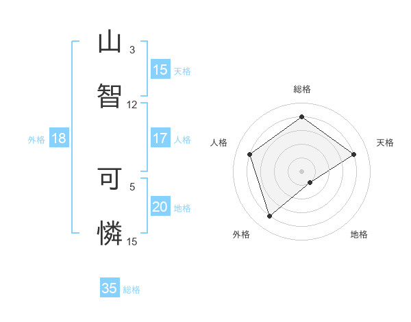 山智 可憐さんの地格は20画の1点!