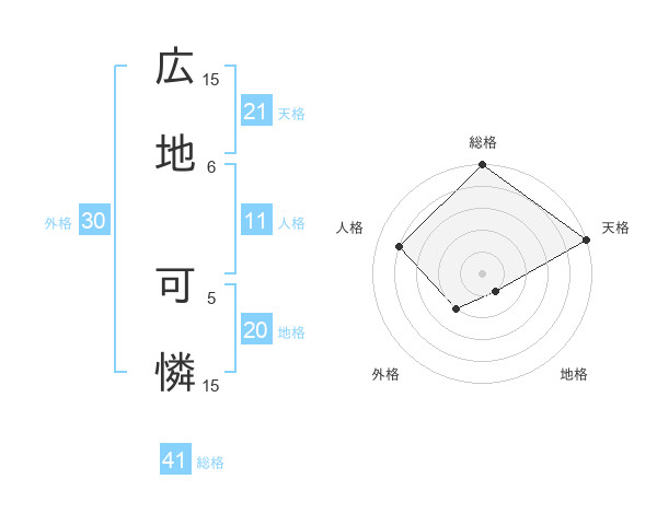 広地 可憐さんの地格は20画の1点!