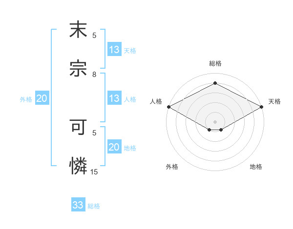 末宗 可憐さんの総格は33画の4点!