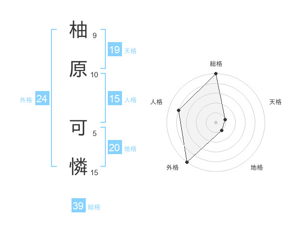 柚原 可憐さんの外格は24画の5点!