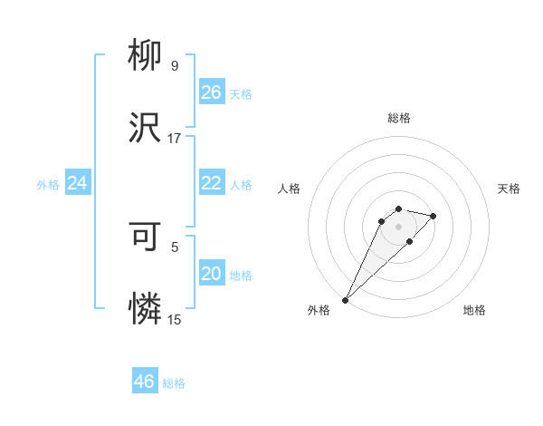 柳沢 可憐さんの外格は24画の5点!
