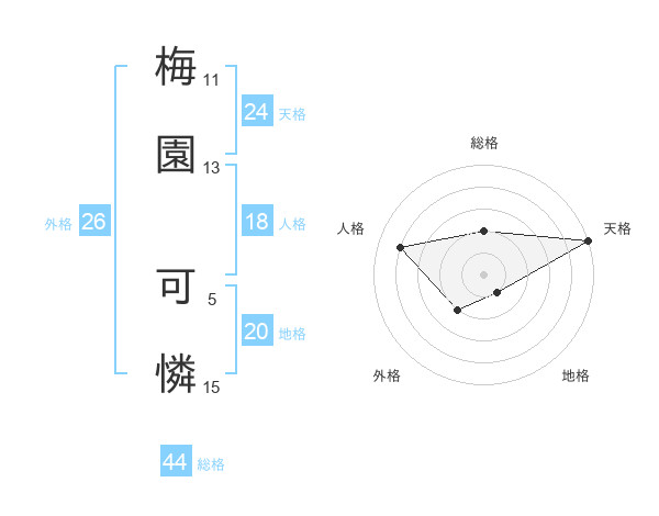 梅園 可憐さんを姓名の画数から五運を鑑定