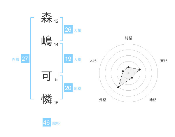 森嶋 可憐さんを姓名の画数から五運を鑑定