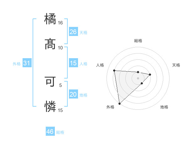 橘髙 可憐さんを姓名の画数から五運を鑑定