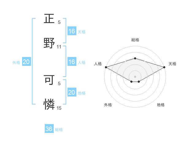 正野 可憐さんの天格は16画の5点!