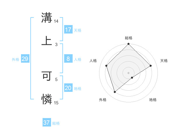 溝上 可憐さんを姓名の画数から五運を鑑定