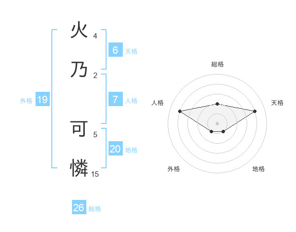 火乃 可憐さんを姓名の画数から五運を鑑定