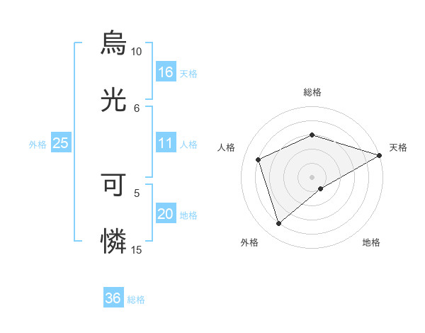 烏光 可憐さんの天格は16画の5点!