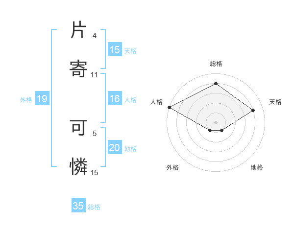 片寄 可憐さんの地格は20画の1点!