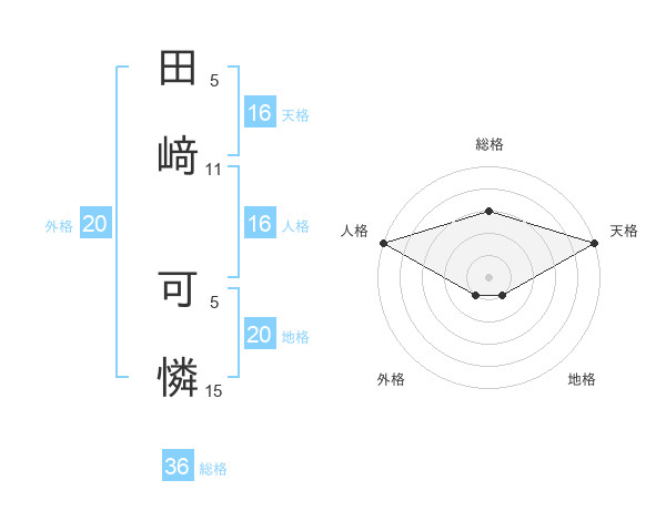 田﨑 可憐さんを姓名の画数から五運を鑑定