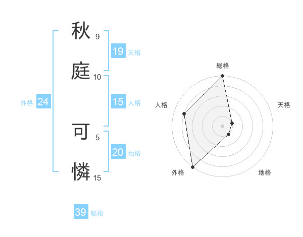 秋庭 可憐さんを姓名の画数から五運を鑑定