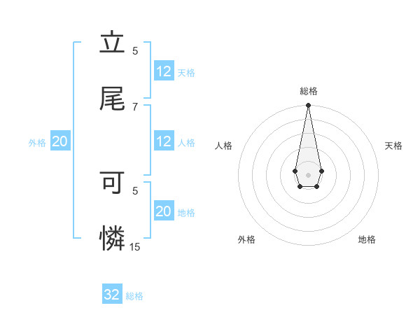 立尾 可憐さんの総格は32画の5点!