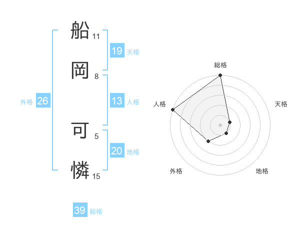 船岡 可憐さんの総格は39画の5点!