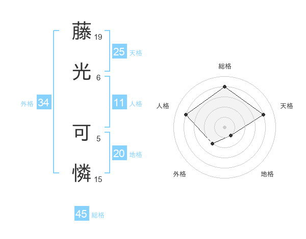 藤光 可憐さんの総格は45画の4点!
