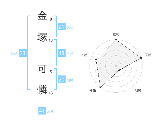 金塚 可憐さんを姓名の画数から五運を鑑定