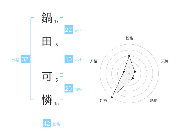 鍋田 可憐さんを姓名の画数から五運を鑑定