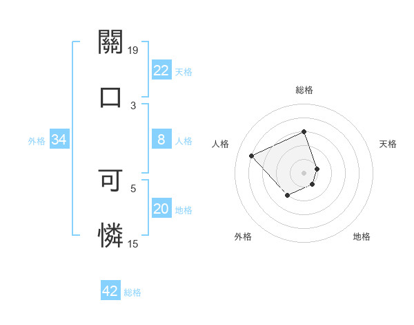 關口 可憐さんの地格は20画の1点!