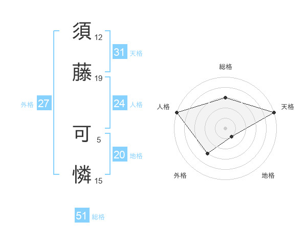 須藤 可憐さんの総格は51画の3点!